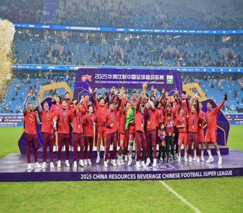 2025年11月22日,上海海港队在颁奖仪式上庆祝夺冠。 当日,在辽宁大连举行的2025赛季中国足球协会超级联赛第30轮比赛中,上海海港队客场1比0战胜大连英博海发队,获得本赛季中超联赛冠军。 新华社记者 吴青昊 摄