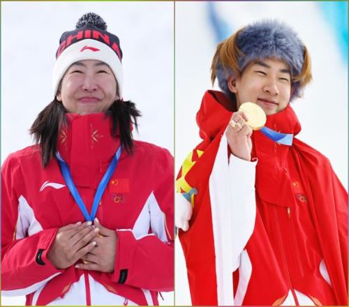 徐梦桃(左)和苏翊鸣。新华社记者 胡超、王鹏 摄
