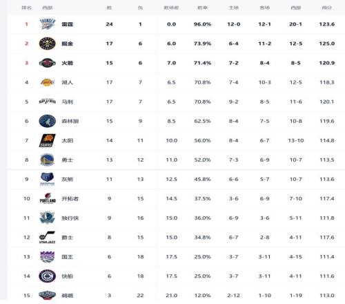 今日比赛后湖人、掘金、火箭排名互换,其他西部球队排名不变。